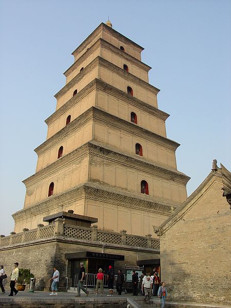 The stories of the pagoda are square in plan. The size of each story (length, width, and height) decreases from the bottom to the top of the building, which gives the effect of a tower of