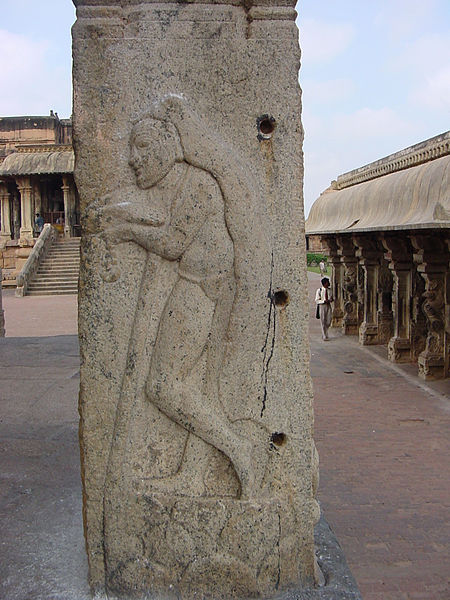 This portrait of a herder is set up in front of the Nandi shrine. Other portrait steles depict donors to the temple, but this one is a mystery.