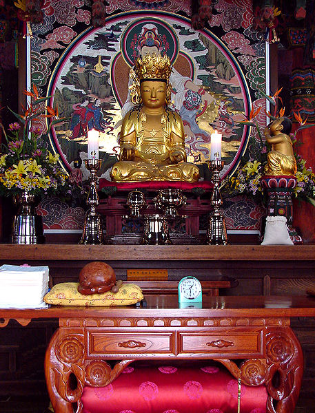 This hall, located just to the right of the main hall (previous page), enshrines an image of the savior bodhisattva.